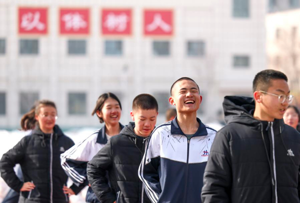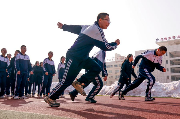 图为在新疆乌鲁木齐市第十九中学,学生们在上体育课(2月20日摄)。新华社记者 王菲 摄