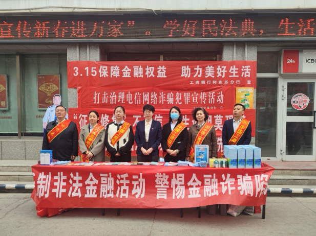 为切实履行社会责任,提升公众金融素养,维护金融消费者合法权益,工商银行阿克苏分行于3月14日精心组织开展了以“打击治理电信网络诈骗犯罪”为主题的系列宣传活动。本次活动紧密围绕金融消费者权保护这一主线,通过多部门协同联动,创新宣传形式,取得了良好的社会反响。