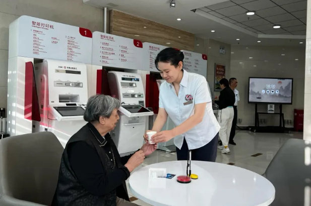 在服务设施方面,工商银行新疆分行分类升级。全辖网点为老年客户提供空调、饮水机、老花镜、爱心专座、急救箱等便民服务设施,确保老年客户在办理业务时的舒适度。养老金融特色网点通过摆放专属桌牌等,强化适老服务识别与引导;养老金融旗舰网点及部分标杆网点配备振动叫号器方便视力及听力障碍老年客户办理业务,同时,养老金融旗舰网点还配备了自动体外除颤仪,甄选员工进行急救培训。