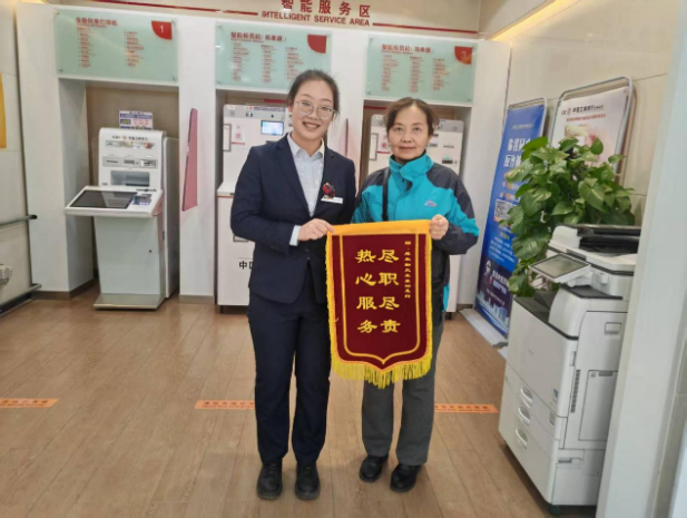 2025年3月15日,工行火车东站支行收到客户陆先生送来的锦旗,向火车东站支行柜员王雨冰予以表扬,称赞她“尽职尽责,热心服务”。这八个金色大字不仅是对银行工作人员的认可,更是该行一直秉持热情周到服务理念的有力见证。