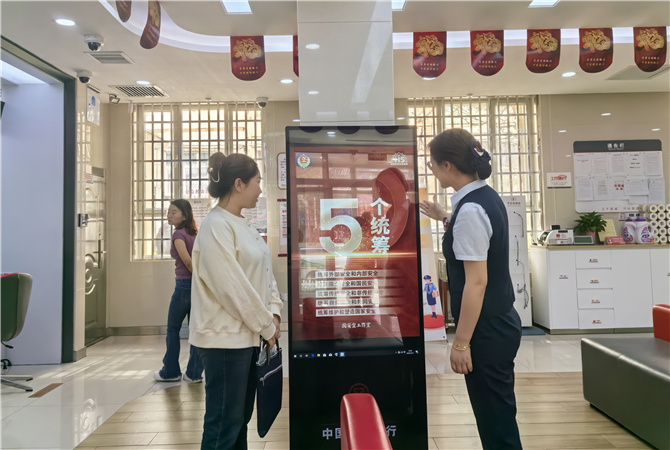 拓宽宣传渠道,提升活动效果。工商银行克拉玛依石油分行以营业网点为阵地,利用电子显示屏为载体,播放“全民国家安全教育,走深走实十周年”“国家安全一切为了人民、一切依靠人民”“保守国家秘密,维护国家安全”等相关标语,利用海报机、宣传折页等方式,通过现场讲解、分发传单、播放视频等形式,开展形式多样、面向群众的宣传教育活动,引导广大员工、社会民众增强保密意识、筑牢安全防线;同时,营业网点以商户走访为宣传契机,进社区、进商户、进企业开展主题宣传活动,为群众普及国家安全知识,现场答疑,提高广大群众参与维护国家安全的积极性,营造浓厚的安全氛围,达到良好效果。