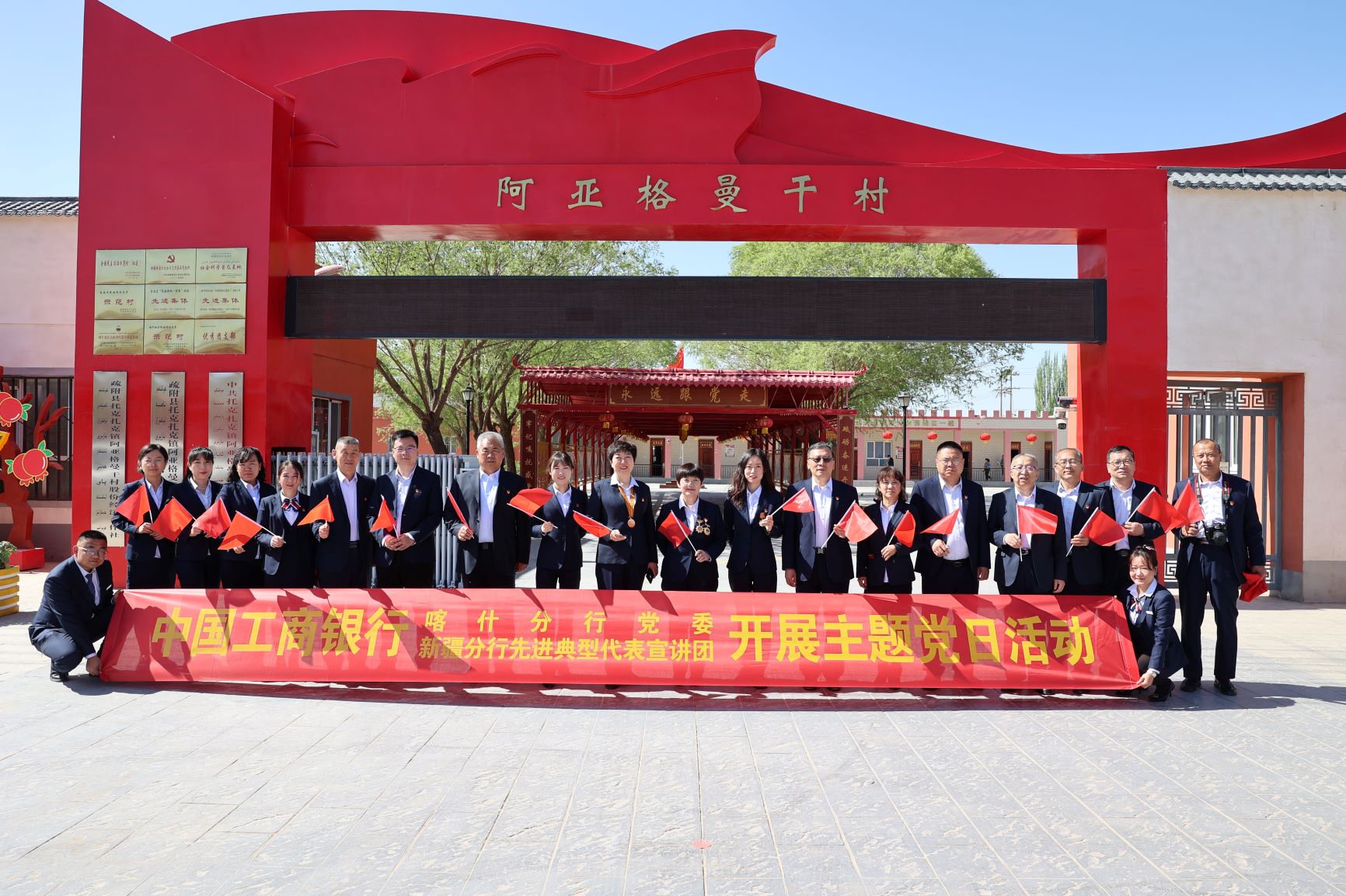 在喀什地区疏附县托克扎克镇阿亚格曼干村,中国工商银行新疆分行“弘扬劳模精神,争做实干先锋”先进典型代表宣讲团与工商银行喀什分行党委开展的主题党日活动。