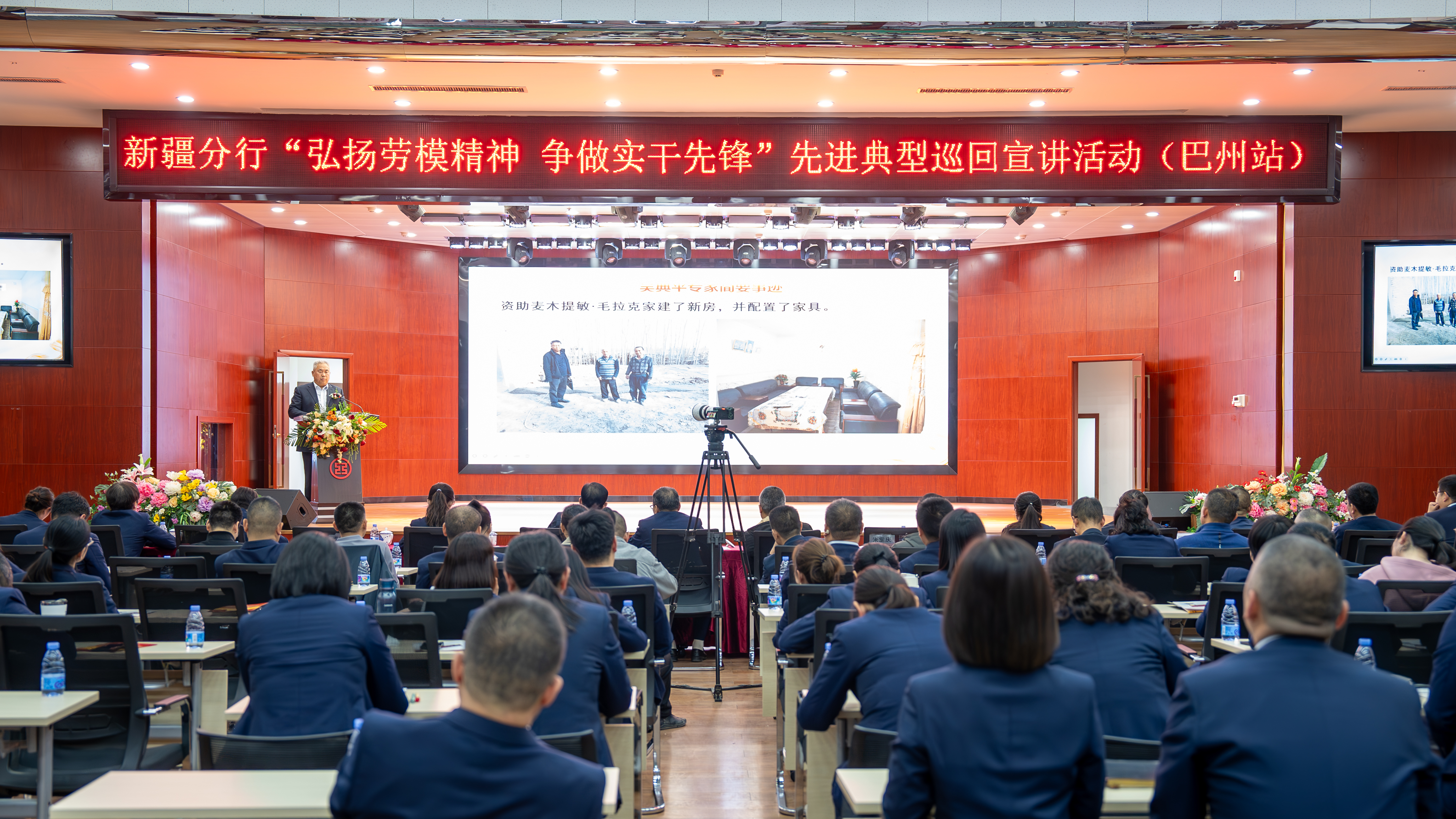 为大力弘扬中国特色金融文化,展现先进典型的榜样引领作用,讲好新疆工行人的故事,4月22日下午,中国工商银行新疆分行“弘扬劳模精神争做实干先锋”先进典型代表巡回宣讲团走进工商银行巴州分行开展宣讲。巴州党委宣传部、中国人民银行巴州分行、国家金融监督管理总局巴音郭楞监管分局、巴州银行业协会等单位代表,工商银行巴州分行员工、离退休老干部代表共百余人参加现场宣讲。
