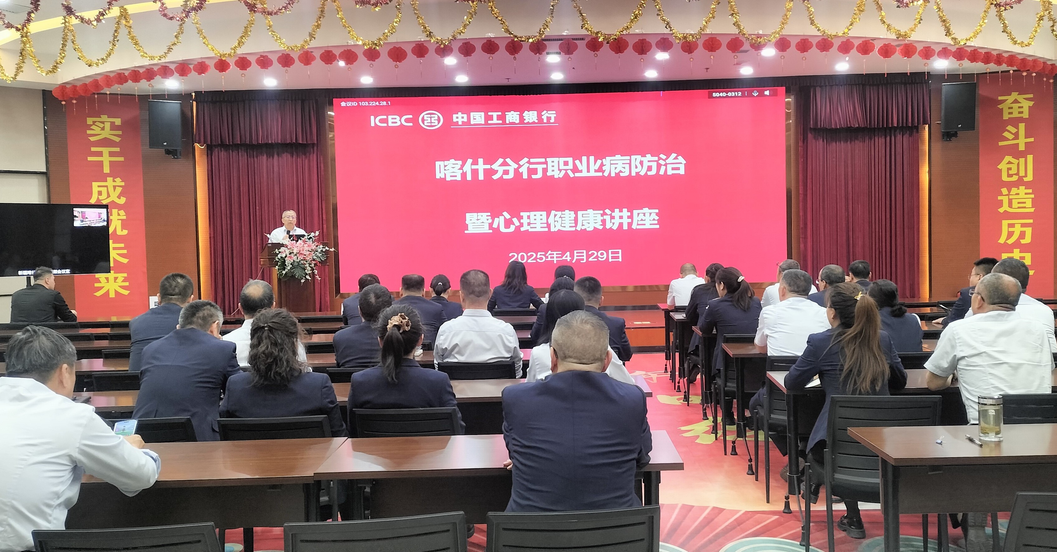 随着社会经济的快速发展,职业病防治和员工心理健康问题越来越受到企业的高度重视。为深入贯彻落实工商银行总分行党委“快乐工作、健康生活”的理念,体现工商银行喀什分行党委、工会对员工身心健康的关心关爱以及为员工“办实事、办好事”,结合《中华人民共和国职业病防治法》宣传周活动和新疆维吾尔自治区做出的“助力健康中国·新疆在行动”战略工作部署,2025年4月29日下午,工商银行喀什分行举办了2025年度职业病防治暨心理健康讲座。