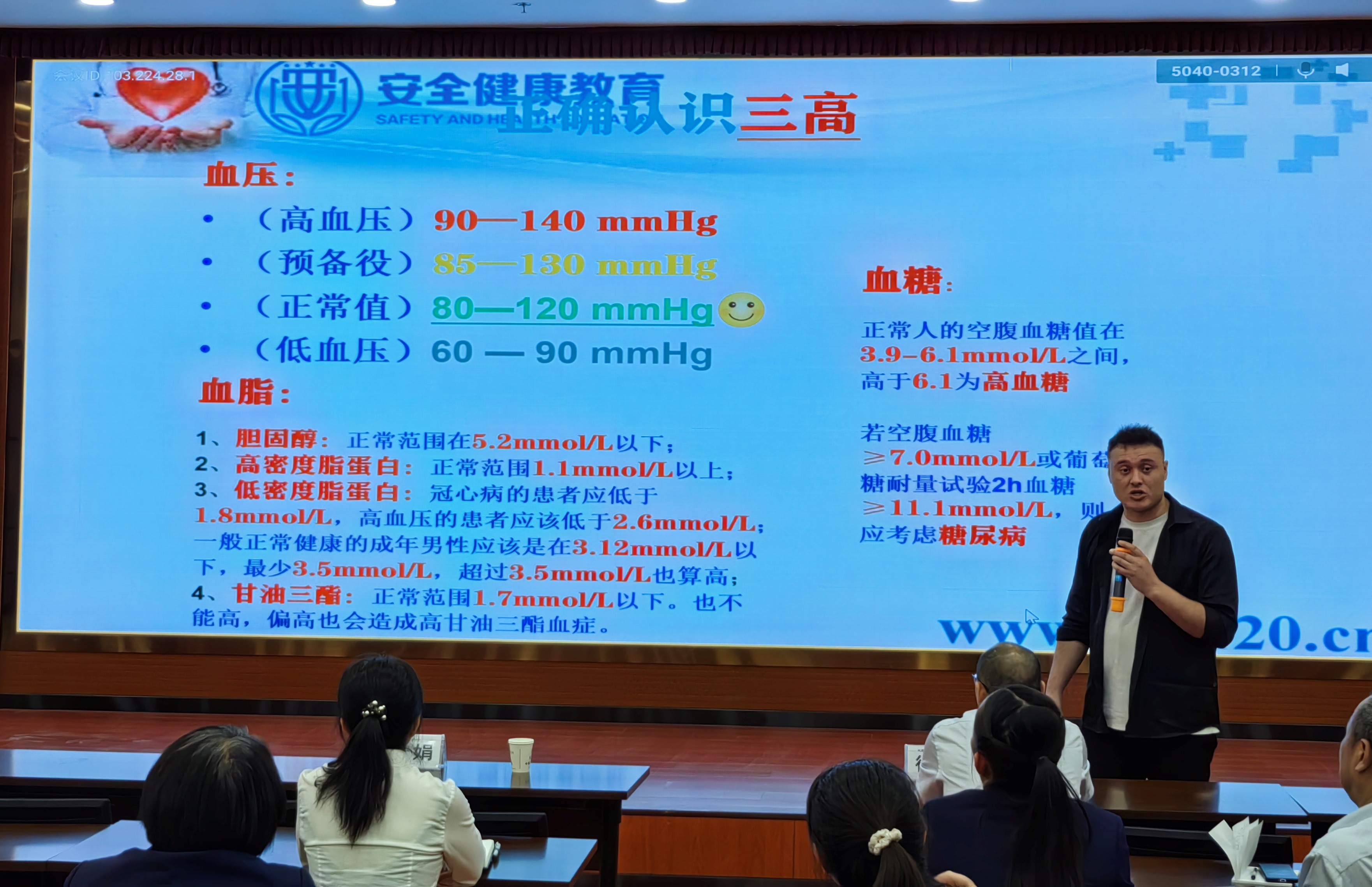艾孜买提老师用时90分钟,为工商银行喀什分行干部员工作了常见颈椎病、腰椎病、肩周炎等职业病的预防及改善;健康专项行动及心理健康缓压疏导;突发意外伤害应急自救互救知识(CPR及AED操作方法);突发性重大疾病如心梗、卒中、心源性猝死等科学预防;生态环境的污染的危害及防护知识等宣讲。
