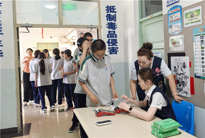 活动第二项,党员志愿者们分工协作,设立服务专区。在业务办理区,工作人员耐心细致地为学生收缴生活费,解决了他们上学过程中无法来银行缴纳生活费的问题;同时向学生普及防范电信诈骗、理性消费等金融知识,增强学生的金融安全意识和自我保护能力;党员同志与学生们亲切交谈,了解他们的学习生活情况,鼓励他们努力学习,积极面对生活。