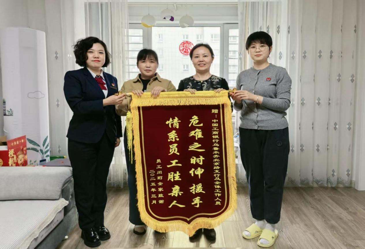 北京路支行始终将自身打造为员工最坚实的后盾,以 “多对一” 帮扶模式为特困员工最大的帮助,积极落实津贴申请绿色通道,确保医疗补助、生活补贴第一时间送达员工手中。2024年,支行成功为 5 名离退休及在职员工申请特困救助金,总额超10 万元,这不仅是物质上的援助,更是精神上的支撑,支行还成立互助小组,解决员工日常工作、生活上的难题,用实际行动守护员工生活。支行党总支书记亲自带队走访慰问困难员工,当他们走进那位因病需长期治疗的特困女员工家中时,真诚的关怀溢于言表,一句“支行永远是坚强后盾”的承诺,让员工倍感温暖,更感动了远在地州家人,他们专程送来 “危难之时伸援手,情系员工胜亲人” 的锦旗,鲜红的锦旗上,每一个字都饱含着对支行党总支的信任与感激。支行以 “家文化” 浸润于员工成长的每个阶段,从新生儿家庭的暖心祝福、到病床前的嘘寒问暖和退休仪式上的深情致敬,每一处细节都凝聚着组织关怀,保持与员工的情感共鸣,让员工真切感受到归属感。这份真挚的情感联结,不仅化作员工拼搏奋进的强大动力,更转化为推动支行高质量发展的坚实力量,实现了员工与集体在温暖与奋进中同心同行、共生共荣。