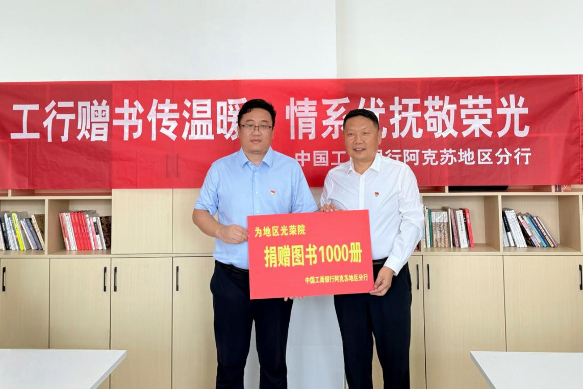 工商银行阿克苏分行与阿克苏地区退役军人事务局始终保持密切协作的良好关系,在中国共产党建党纪念日来临之际,双方联合开展“工行赠书传温暖,情系优抚敬荣光”主题党建联学共建书籍捐赠活动。2025年6月27日,恰逢南疆首家光荣院——阿克苏地区光荣院建成运营,工商银行阿克苏分行作为受邀单位走进光荣院,以书籍捐赠的形式为退役老兵送上饱含关怀的精神食粮。