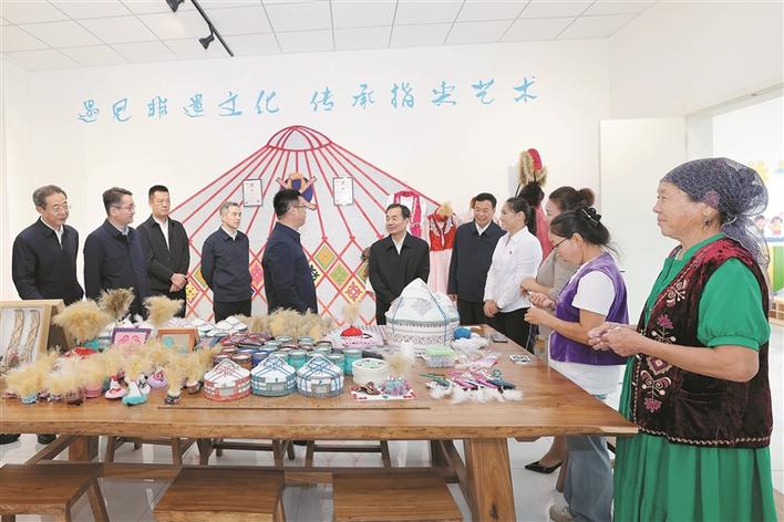 8月18日至20日,自治区党委书记、兵团党委第一书记、第一政委陈小江在阿勒泰地区和兵团第十师北屯市调研。这是8月19日,陈小江来到阿勒泰市拉斯特乡拉斯特村党群服务中心非遗手工坊,了解农文旅融合带动群众增收致富等情况。崔志坚 摄
