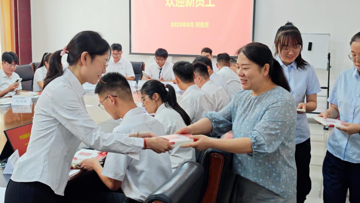 纪委书记结合自身职业经历,对新员工提出四点期望:一是坚守初心,锚定长期职业方向;二是归零学习,快速适应岗位需求;三是勇于担当,主动承担工作责任;四是严守纪律,筑牢廉洁从业底线,并向新员工赠送《干法》《活法》书籍,寄语大家树立正确职业观与价值观,系好在工商银行阿克苏分行职业生涯中的“廉洁从业第一粒扣子”。