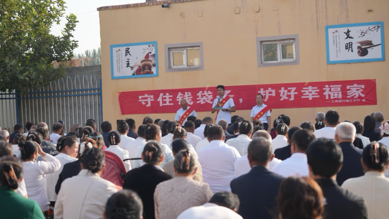 2025年9月15日,工行喀什分行金融宣传团队走进喀什市伯什克然木乡巴依拉12村,在村文化广场以“国旗下讲话”的形式开展“金融知识进乡村 筑牢农村安全防线”主题宣传活动,近200名村民到场参与,将实用的金融安全知识送到村民“家门口”。