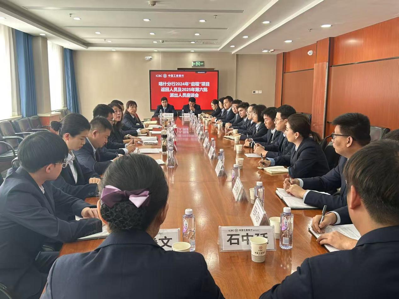 为全面总结2024年“启程”交流项目的宝贵经验,同时为2025年第六批派出人员上好“启程”交流的第一课,工商银行喀什分行召开了由2024年第五批“启程”项目返程人员及2025年第六批“启程”派出人员共16名交流员工参加的座谈会。