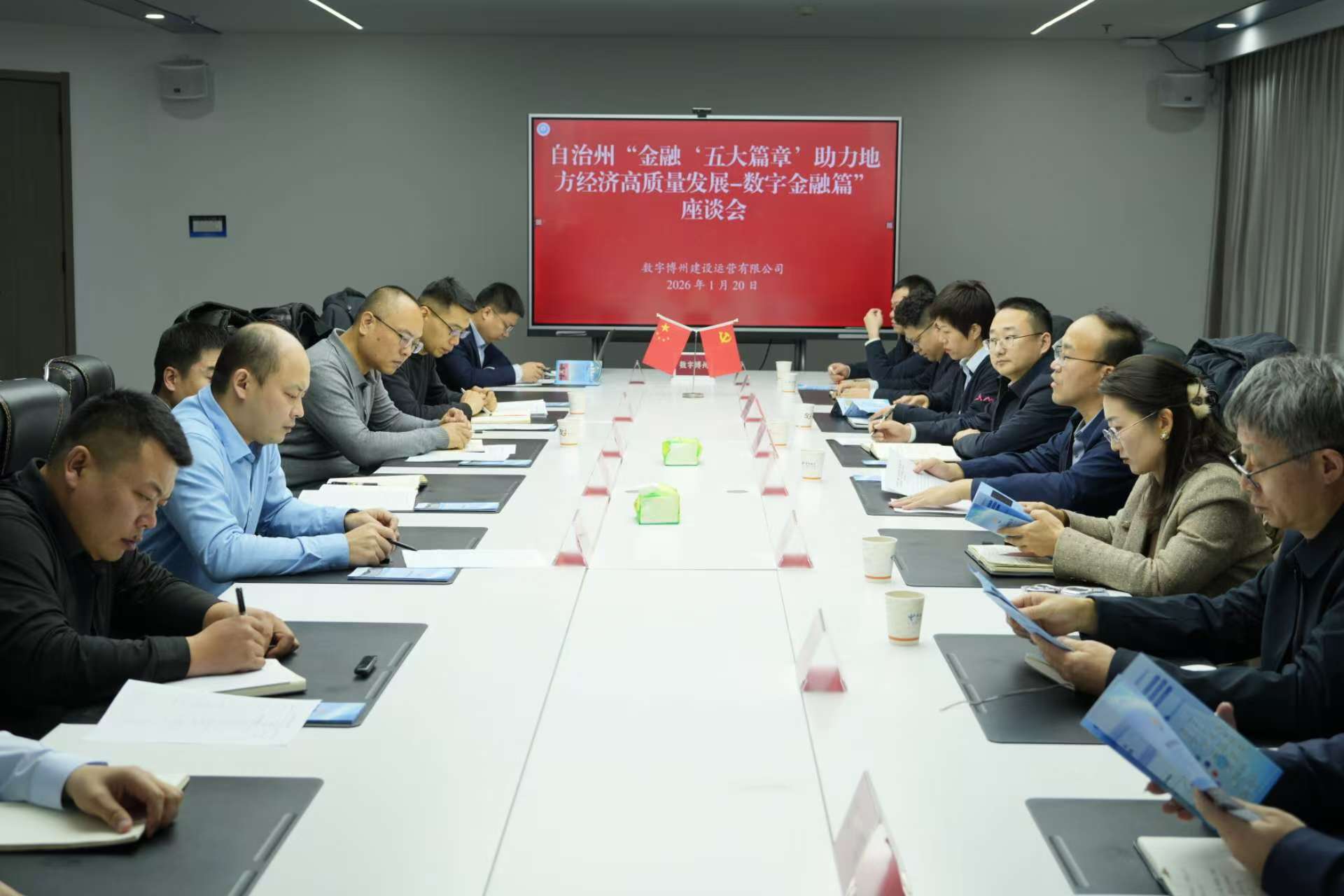 当日下午,受数字化发展局邀请,工商银行高级经理张卫东一行赴数字博州建设运营有限公司参加座谈会,同州数字化发展局、数字博州、金融业代表等与会单位围绕数字金融深化应用、场景共建等议题进行深入交流,并就讲座中谈及的典型案例进行详细交流,进一步凝聚以数字技术驱动区域经济高质量发展的共识,为工商银行博州分行后续参与政府项目合作奠定了非常良好的基础。
