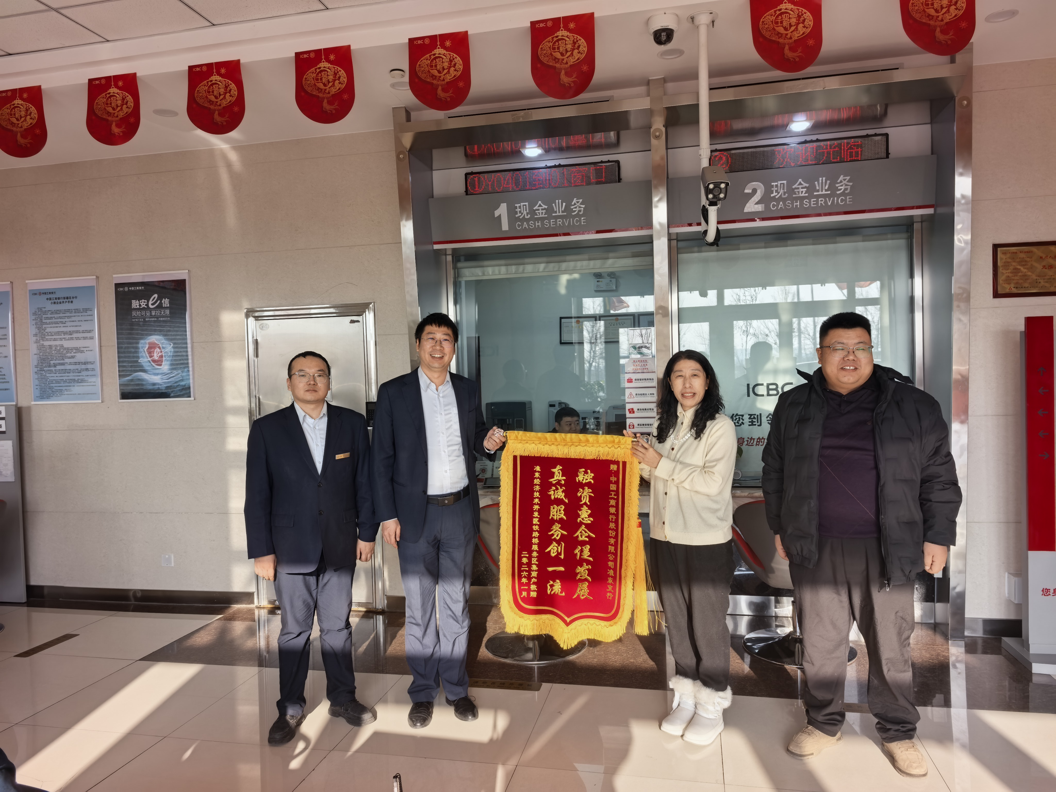2026年1月21日,工商银行昌吉准东支行收到了一份特殊的新年礼物——来自准东经济技术开发区铁路桥服务区十余家商户代表联名赠送的锦旗,锦旗上“融资惠企促发展,真诚服务创一流”的金色字样,不仅是对支行服务的高度肯定,更是银企携手共促发展的生动见证。