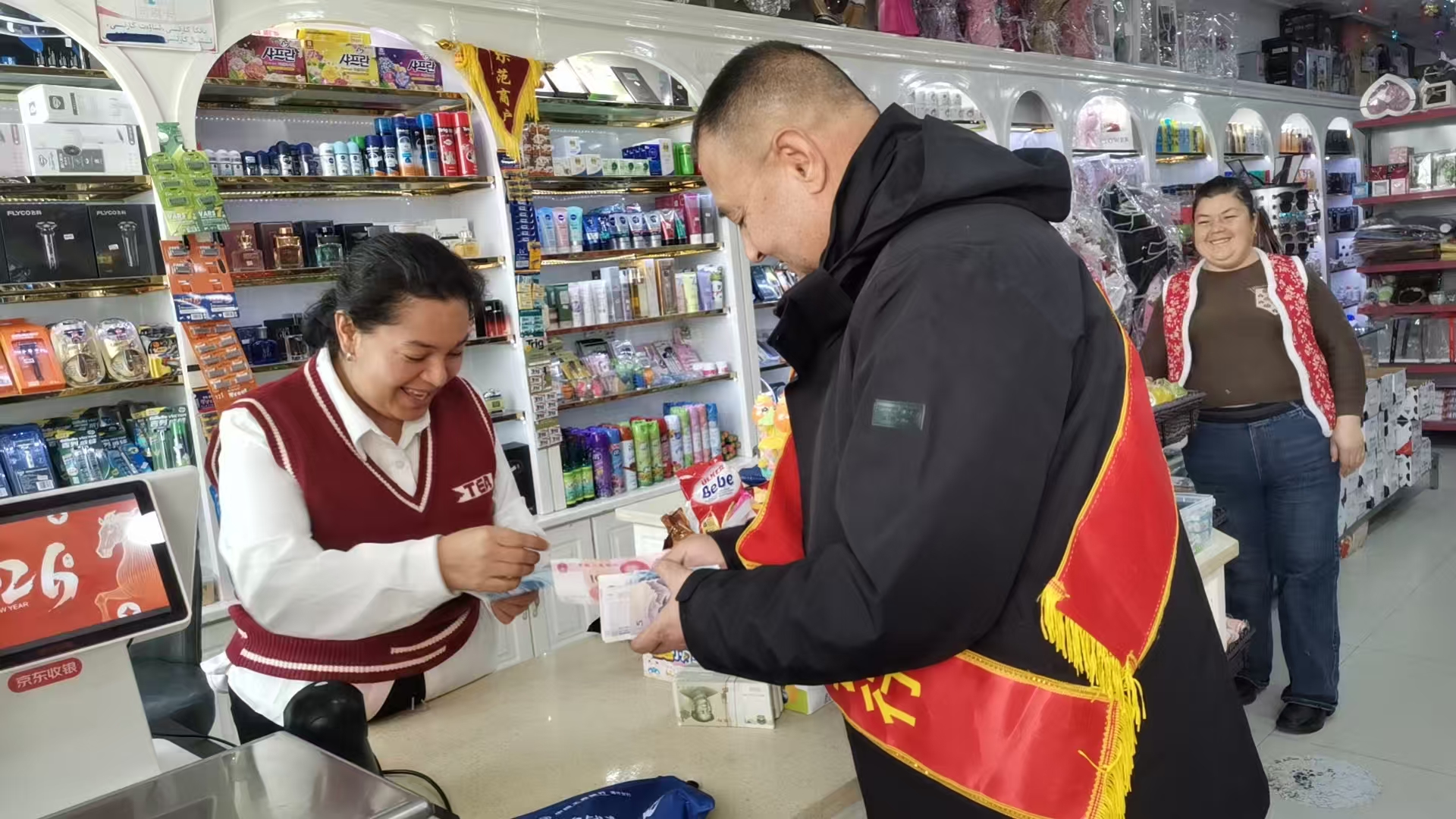 新春佳节渐近,工商银行喀什泽普支行以高度的责任感和使命感,积极投身暖心服务行动。该行走进农贸市场与商超,逐户开展换新钞、零钱服务,以实际行动传递金融温度,有力助推节日氛围更加浓郁。