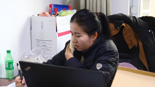 工作人员在电话回访