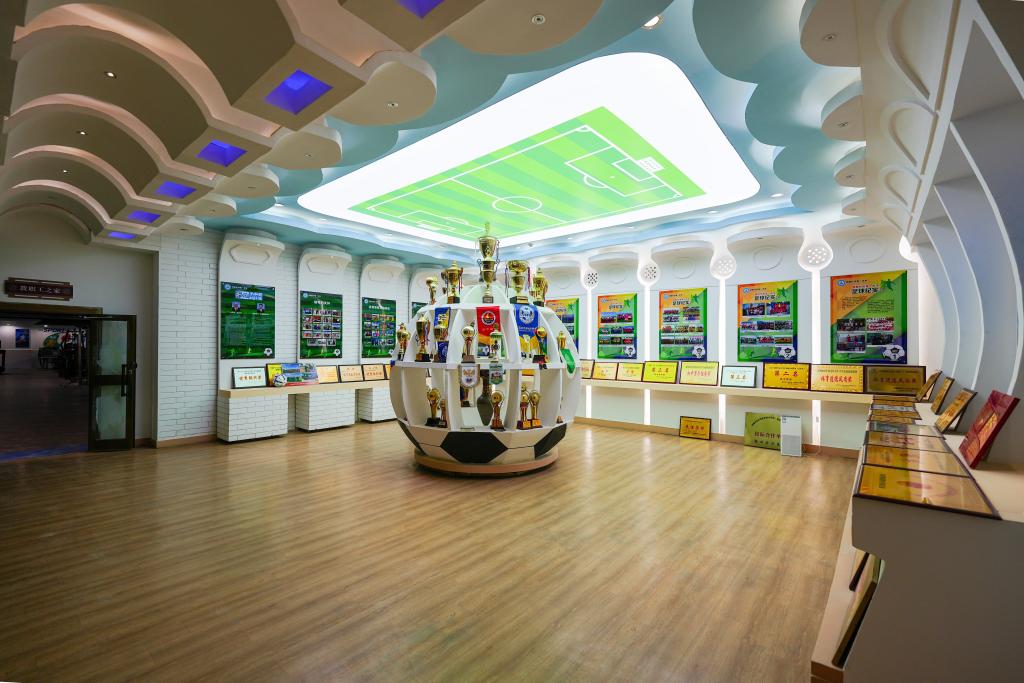 这是新疆克孜勒苏柯尔克孜自治州阿图什一中拍摄的校园足球文化馆内景(4月12日摄)。