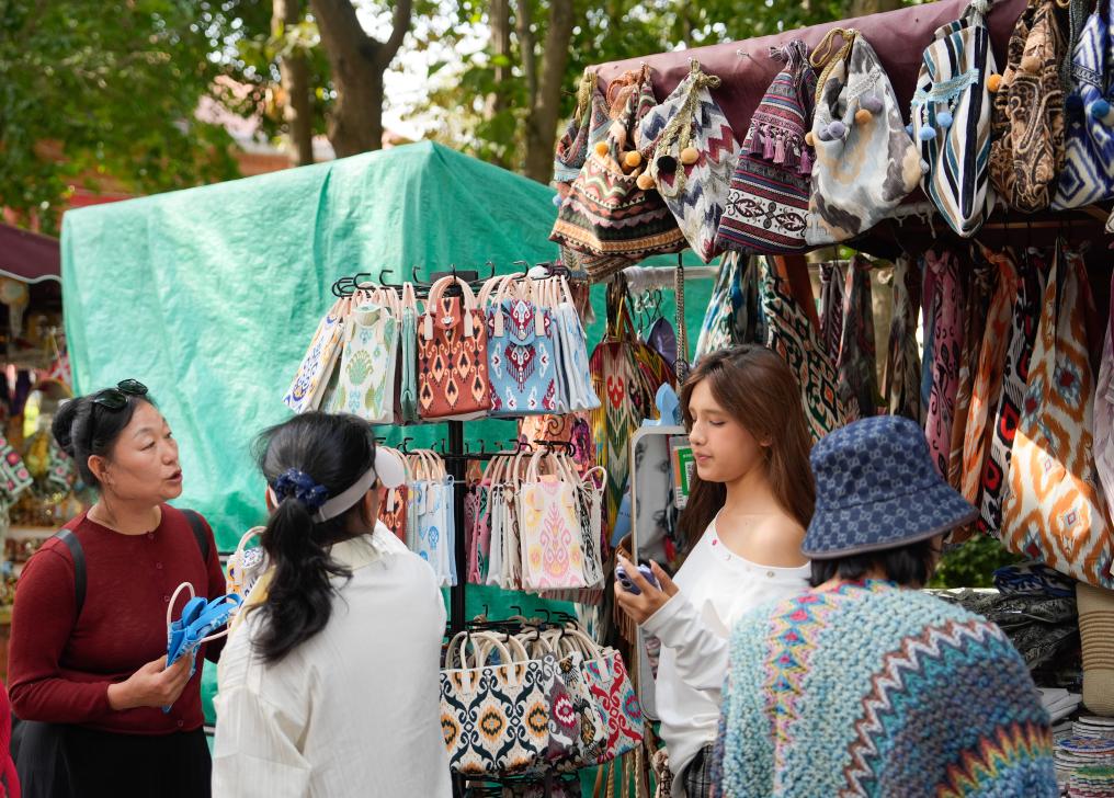 9月8日,游客在六星街选购纪念品。新华社记者 张浩波 摄