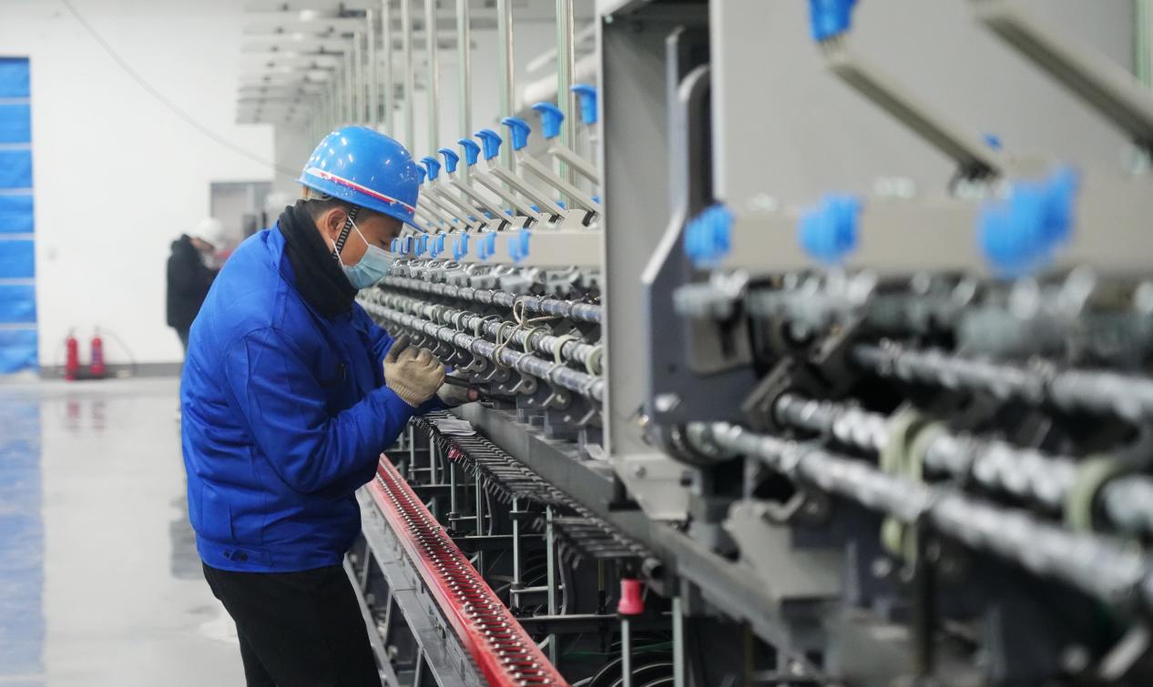 “一号车间承担着20万锭纺织成套设备的安装调试任务,涵盖清花、梳棉、粗纱、细纱、络筒等全流程工序。目前,团队已增派技术力量,并在客户技术人员与专家的现场指导下,加班加点推进首批3万锭设备的安装,严控工艺精度与质量,全力冲刺明生产目标。按计划,该车间全部设备预计于2026年4月安装完毕。”一号车间设备安装负责人张则军说。