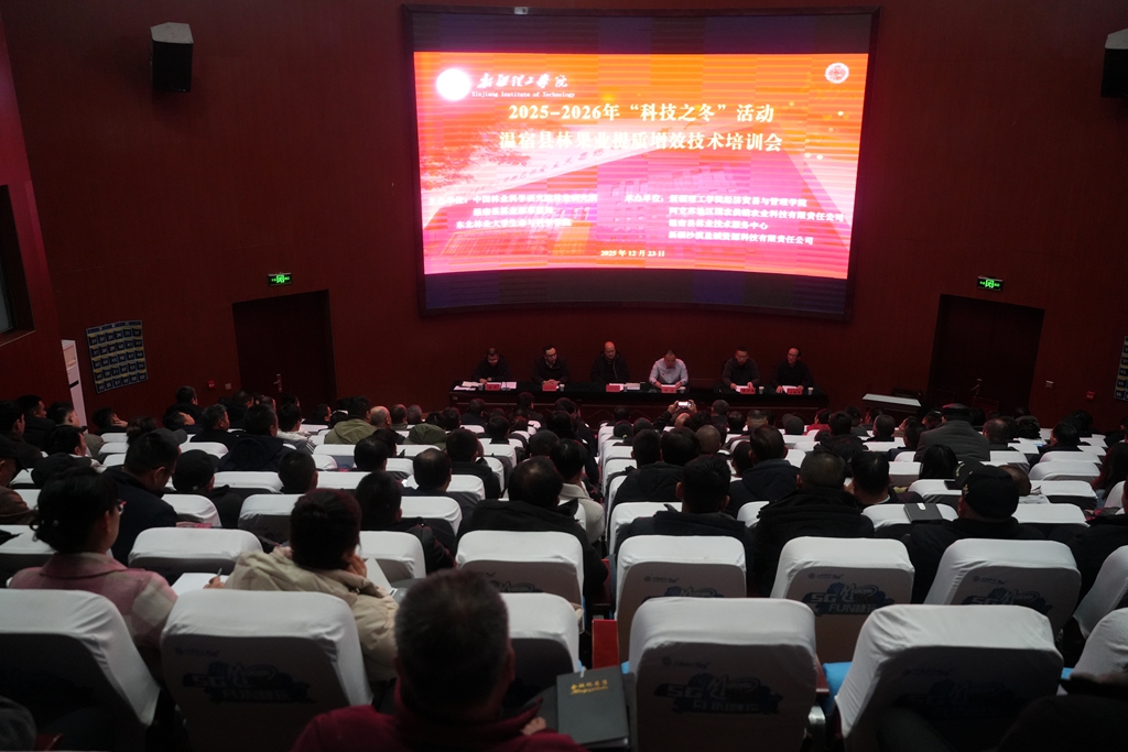 冬闲充电忙,科技助农兴。12月23日,温宿县2025-2026年“科技之冬”林果业提质增效技术培训班在新疆理工学院正式启动。此次培训由中国林业科学研究院林业研究所、温宿县林业和林草局、东北林业大学生命与科学学院联合主办,新疆理工学院经济贸易与管理学院等四家单位共同承办,近200名乡镇林果骨干人才及村科技副职齐聚一堂,沉浸式学习先进技术,为全县林果产业高质量发展蓄能。