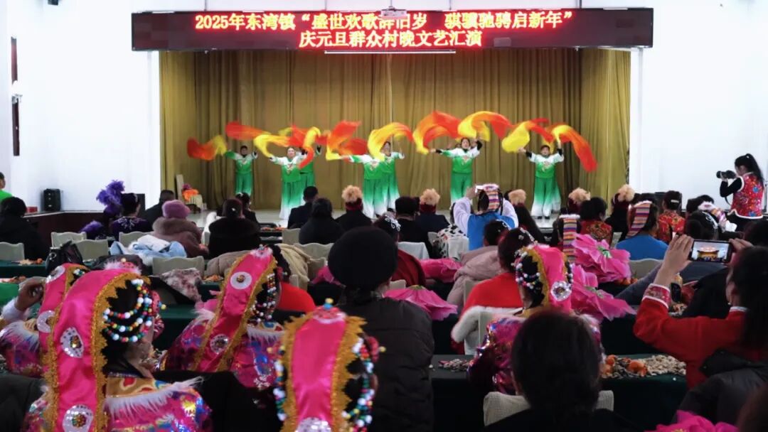 12月25日,沙湾市东湾镇举办“盛世欢歌辞旧岁 骐骥驰骋启新元”庆元旦群众村晚文艺汇演。各村文艺爱好者与机关干部同台献艺,以歌舞、小品、互动游戏等节目共迎新年。