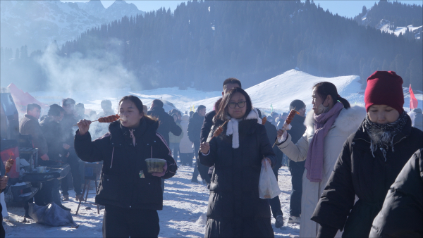 沙湾市民朱元涛说:“朋友从贵阳这边过来,带她感受一下我们新疆的风土人情。到这边感觉今天确实很有烟火气,也有我们民族特色,像哈萨克族的刁羊,包括哈萨克族一些美食,沙湾本地的一些美食,感觉风土人情特别好。”