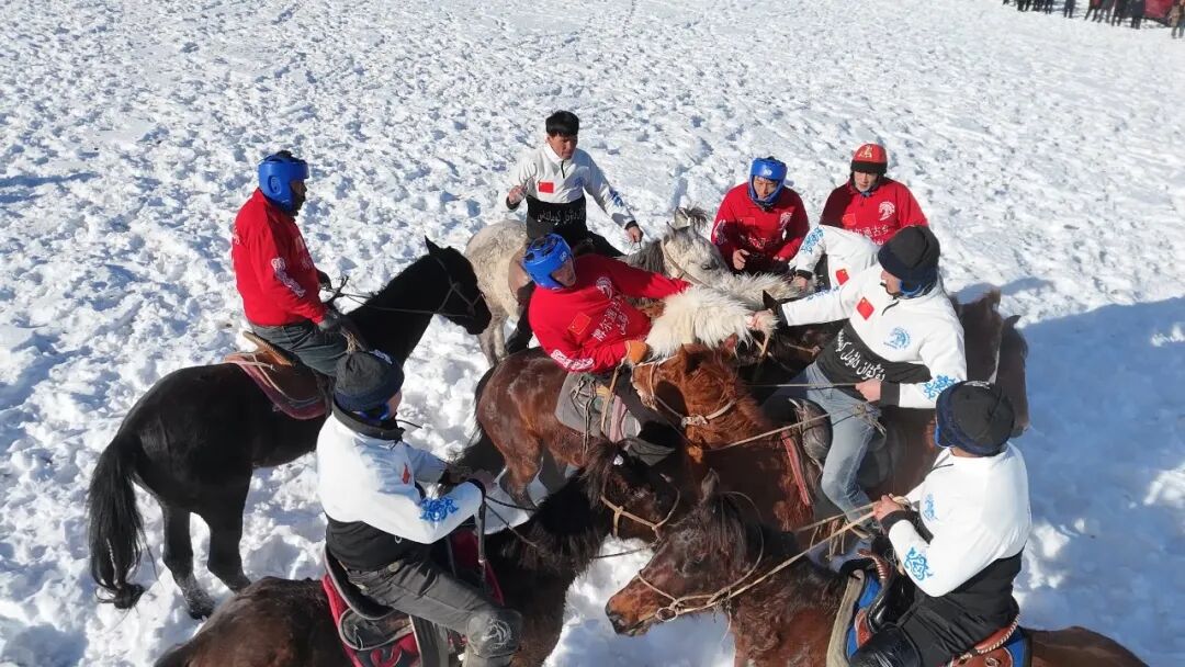1月1日,在沙湾市鹿角湾景区,正在举行的刁羊比赛。特来克·木哈买提江摄