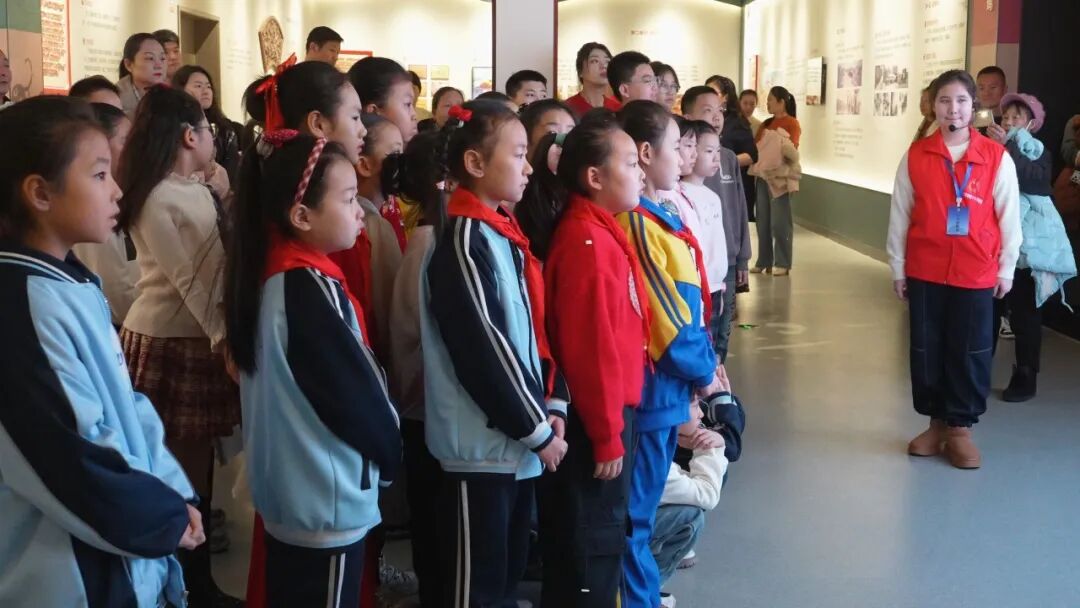 1月1日,在沙湾市博物馆,小讲解员正在讲解沙湾美食历史。段江玺摄