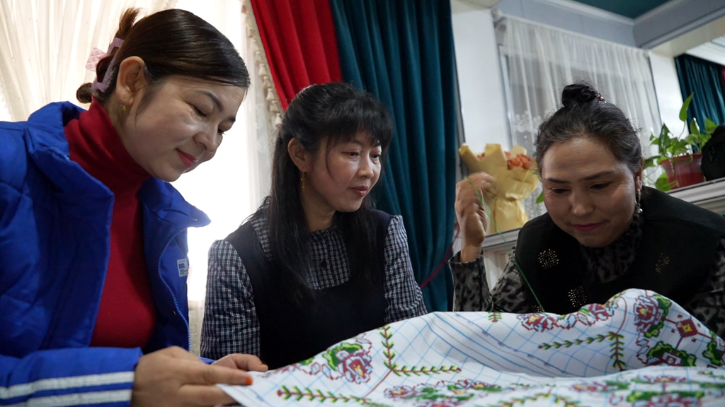 冬日暖阳,洒满温宿县柯柯牙镇柯柯牙村的农家小院。屋内,彩线翻飞,银针穿梭,汉族妇女谢丽群正跟着维吾尔族邻居古海尔克孜·阿合尼亚孜学习刺绣技艺。指尖起落间,绣绷上渐渐浮现出精致的花卉纹样,那细密的针脚、明艳的配色,不仅藏着传统手艺的精巧,更交织着跨越民族的深厚情谊。