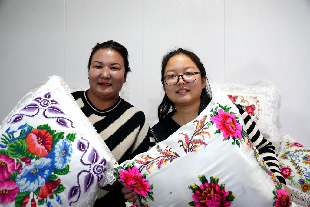 “古海尔克孜是我的好邻居,我们相识已有十载。她的刺绣手艺精湛地道,配色构图都有独到的巧思,我早就盼着能跟着她学手艺。”谢丽群捧着刚完工的绣品,眉眼间满是成就感,“农闲时节,我天天到她家讨教平针、套针的针法技巧,从描图打底到配色绣花,每一步她都耐心指导。现在我已经能独立绣出像样的作品了,心里别提多高兴。”