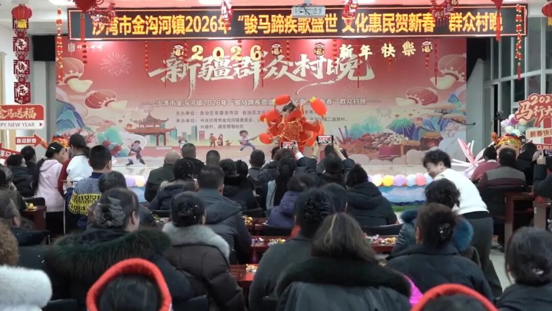 瑞雪迎新岁,文化润心田。1月20日,塔城地区沙湾市金沟河镇举办2026年“骏马蹄疾歌盛世 文化惠民贺新春”群众村晚,来自全镇各村(社区)的群众代表齐聚一堂,共迎新春佳节,共享文化盛宴。