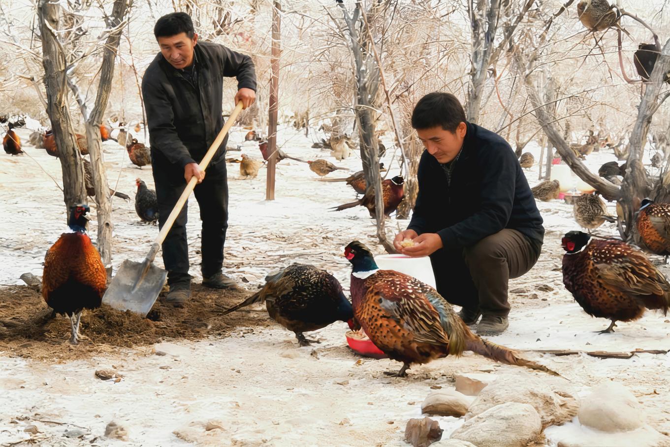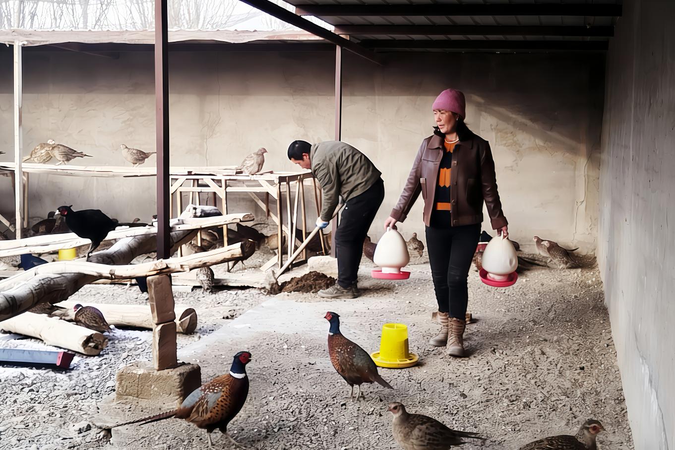 寒冬时节,走进温宿县柯柯牙镇帕克勒克村的雪山珍禽养殖场,上千只七彩山鸡翎羽鲜亮、体态矫健,工人们穿梭其中,投喂饲料、登记出栏情况。