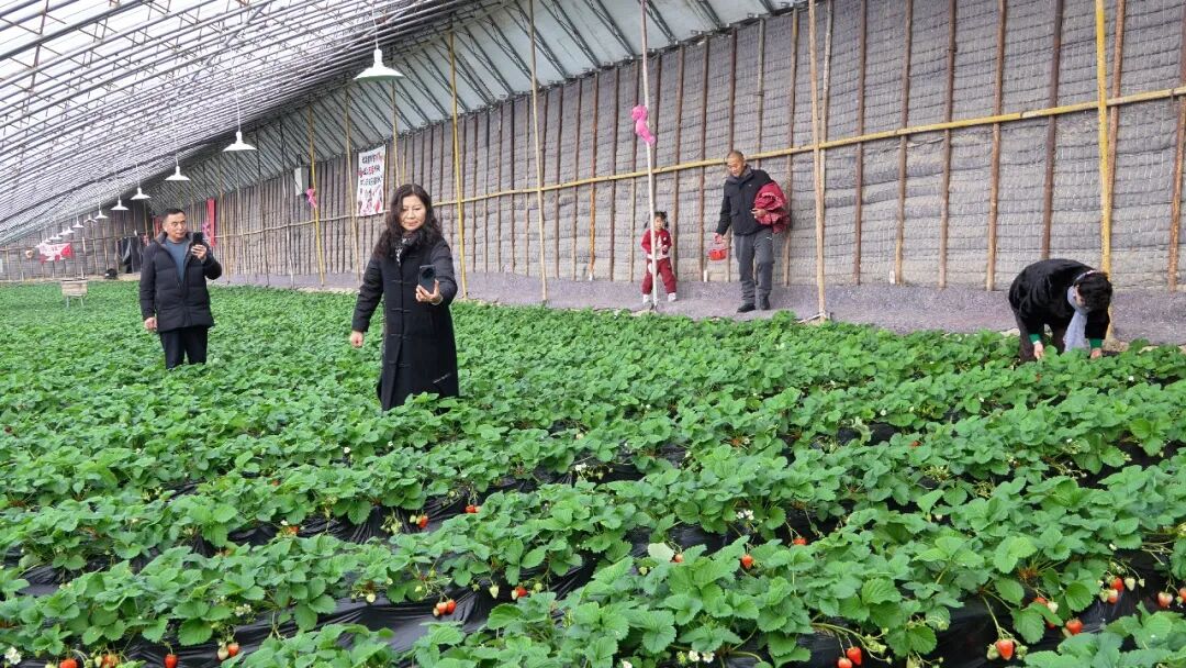 不少市民也来到草莓种植大棚,体验采摘乐趣、拍照打卡,顺带选购新鲜草莓带回家,大棚里满是欢声笑语。