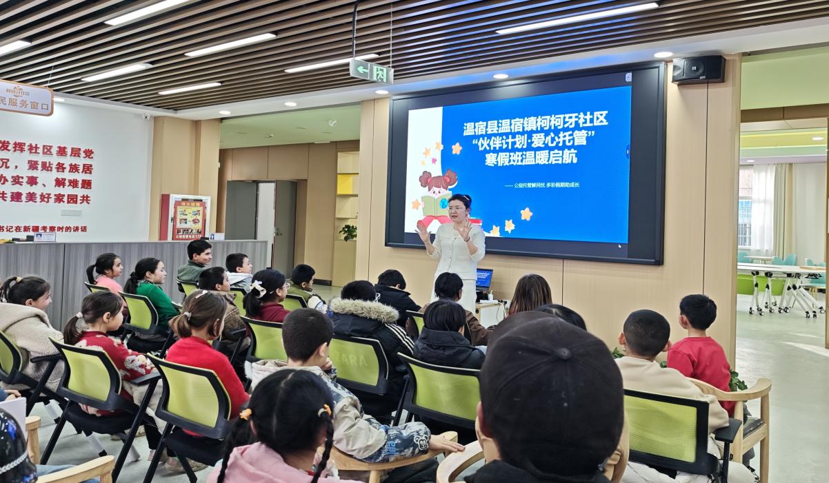 “我和爱人都是企业职工,孩子放假后没人照看一直是我们的心病,社区的爱心托管班真是解了燃眉之急!”近日,温宿县温宿镇柯柯牙社区“伙伴计划·爱心托管”寒假班在社区石榴籽服务站正式开班。社区负责人、大学生志愿者代表、学生及家长代表共同参加开班仪式,一场集安全守护、学业辅导、素质拓展于一体的暖心假期服务就此拉开序幕。