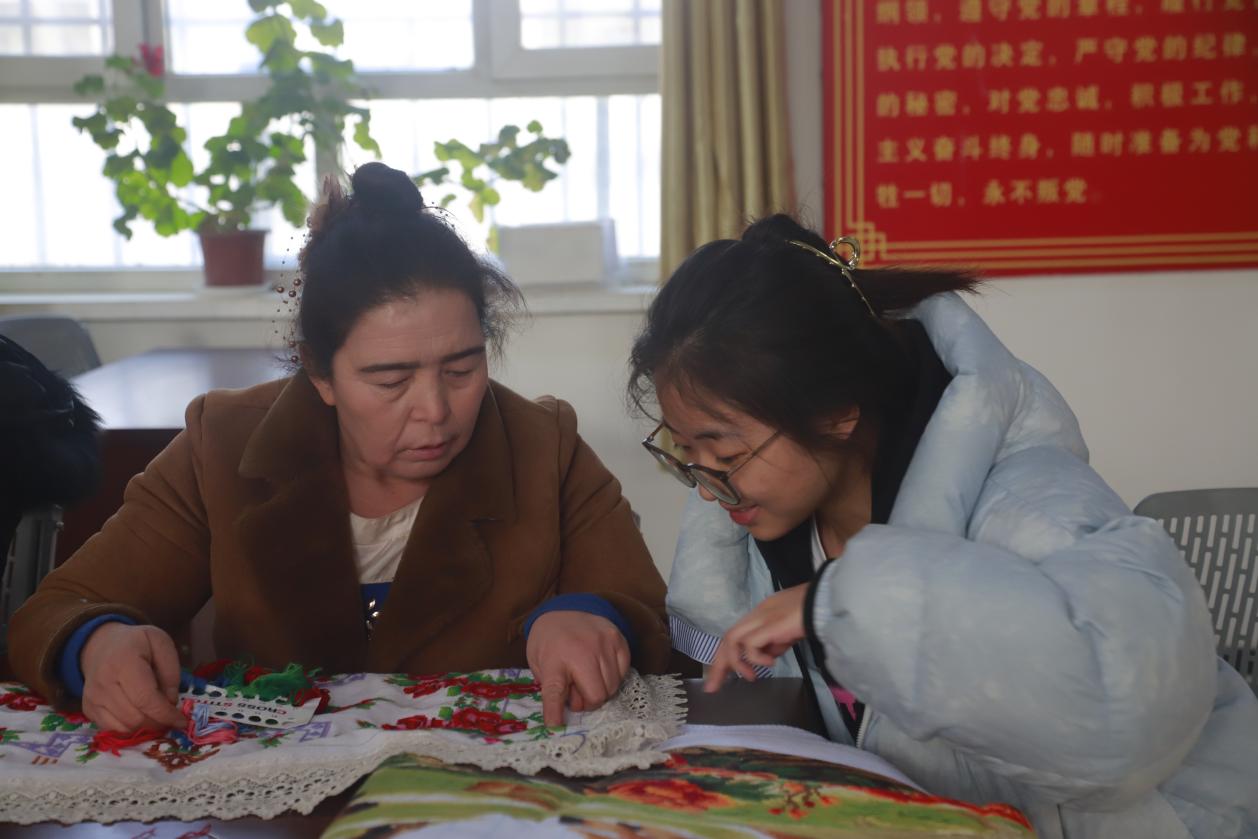 刺绣老师给学员讲解刺绣图案。(张浩 摄)
