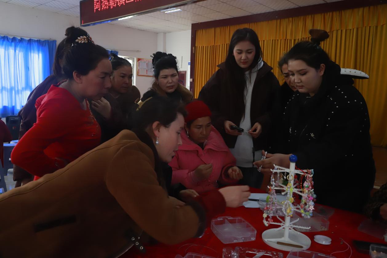 2月3日,温宿县阿热勒镇巴格其艾日克村新时代文明实践站内气氛热烈、丝线飞扬。一场别开生面的“传承非遗流苏技艺,弘扬中华传统文化”流苏挂件制作技能大赛在这里火热举行。活动由驻村工作队与村“两委”精心组织,不仅吸引了众多村民踊跃参与,更通过微信视频号“小伊乡助”进行了直播,让传统技艺在指尖竞技中焕发新的活力。