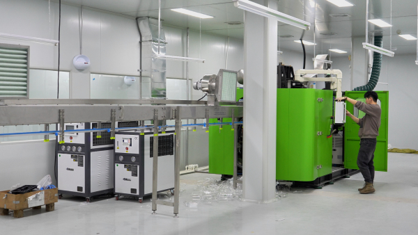 在标准化生产车间,记者看到,全自动智能生产线有序运转。从吹瓶、灌装到贴标、装箱,整个流程依托智能设备高效完成。随着传送带平稳推进,一瓶瓶饮用水经过多道工序,在传送带上快速完成封装、打包、传输。