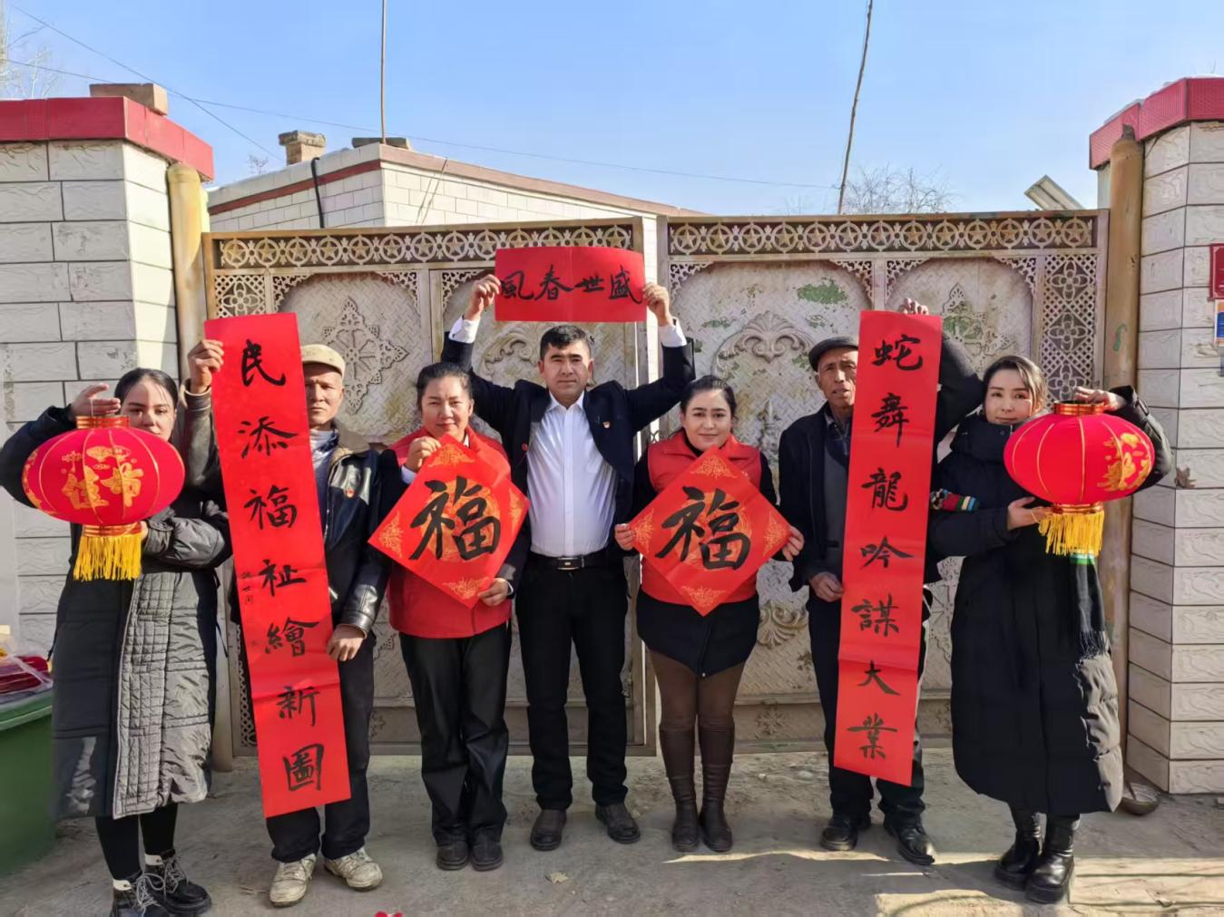 吐木秀克镇宣讲员给村民送春联(李颖 摄)
