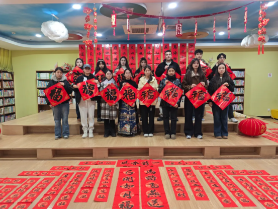 随后,“联韵书香”创作环节精彩上演,实现了阅读积累向创意实践的有效转化。同学们借鉴诗词读本中的对仗格律,融入个人新春期盼与马年美好愿景,现场构思、创作了一幅幅意蕴盎然的原创春联。活动特邀县书法家协会会员莅临,以笔墨为桥,将这些源自阅读与思考的青春文辞,挥毫书写成一幅幅精美的书法作品。当凝聚着文学巧思的联句跃然红纸之上,青少年们不仅体验到从“读到”到“写出”的创作乐趣,更直观领略了汉字书法作为传统文化载体的独特艺术魅力,在笔墨书香中传承文化基因。