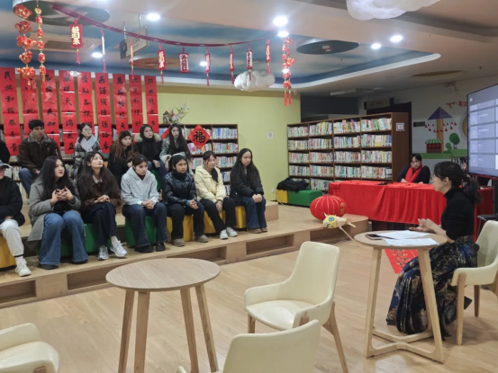 活动在轻松活泼的座谈分享中拉开序幕。现场,大家共同品读国家图书馆提供的专题文献,细致研读春节起源、年俗演变的相关内容,围绕“家乡年味”展开深入交流。同学们踊跃分享书中记载的传统年俗,结合自家过年的亲身经历,畅谈传统文化在当代家庭中的传承与创新。这一环节将静默的文本阅读转化为生动的对话交流,让青少年在文献知识与生活实践的互证中,真切感受年俗文化的厚度与温度,深刻诠释了“阅享”一词中阅读与分享的双重内涵。
