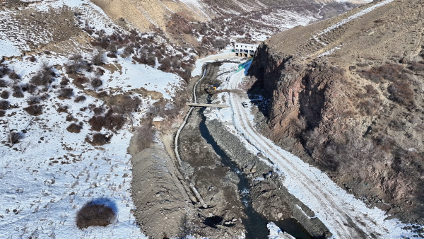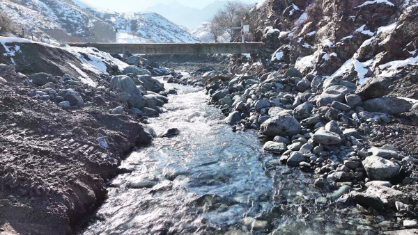 沙湾市宁家河水源地应急保障工程施工现场分流的清池河水。特来克·木哈买提江摄