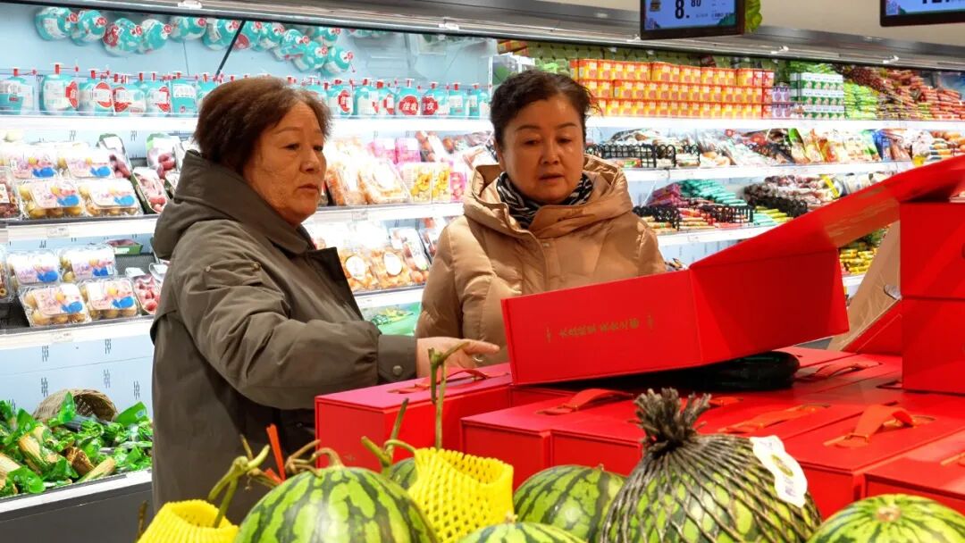 2月10日,记者走访沙湾市各大商超看到,精心设计的“特产好物”礼盒陈列在年货专区醒目位置,摆放有序,吸引众多市民驻足选购。