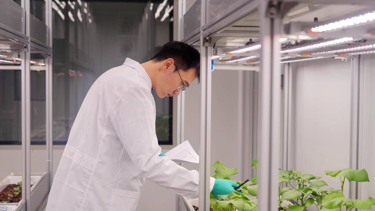 “我们通过根系分析仪、棉花纤维检测仪、光合作用仪等设备,对生长周期进行全程监测。白天温度控制在26至32摄氏度,夜间稍降至22至24度,光照与湿度也根据发育阶段精准设定。”占金祎介绍。研究生毕业后加入金丰源的她,今年春节与同事们轮班值守,确保实验不间断、数据不缺失。“再过一个月就到花期,这批材料即可收获。春节期间大家轮岗,必须有人实时看护,保障棉苗正常生长。”