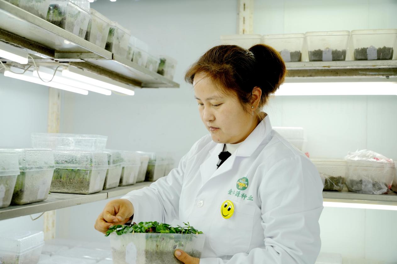 如果说生产线是棉种加工的“主战场”,那么检验室和发芽室就是守护种子质量的“生命线”。在这里,质检部经理付艳正带领团队,对每一批加工好的棉种进行抽样、培育、检测,全程细致观察棉种的出芽情况、苗情长势,用严谨与坚守守住棉种质量的“最后一道关口”。“发芽室温度严格控制在25到30摄氏度,24小时监控。”付艳轻轻托起一个培养皿,里面是发芽六天的棉苗,“每批种子我们都要做发芽试验,一般发芽率都在92%左右。”