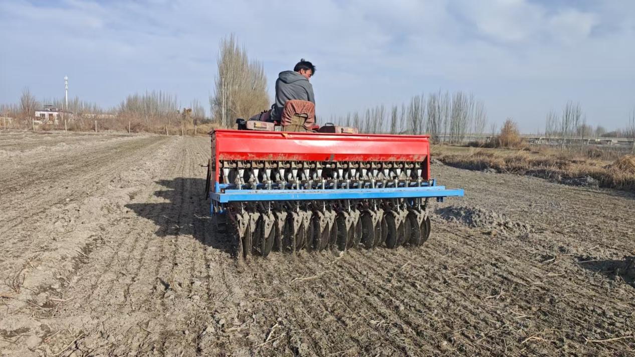 在阿亚克其村的小麦播种现场,农户们同样忙碌而有序。他们抓住当前的好时机,全部采用机械化种植方式,大大提高了小麦播种的效率和质量。农户巴克尔·热木提力兴奋地说:“去年我种了60亩小麦,今年扩大到了70亩,预计明天就能全部种完。机械化种植真是帮了大忙,让我们能更轻松地完成播种任务。”