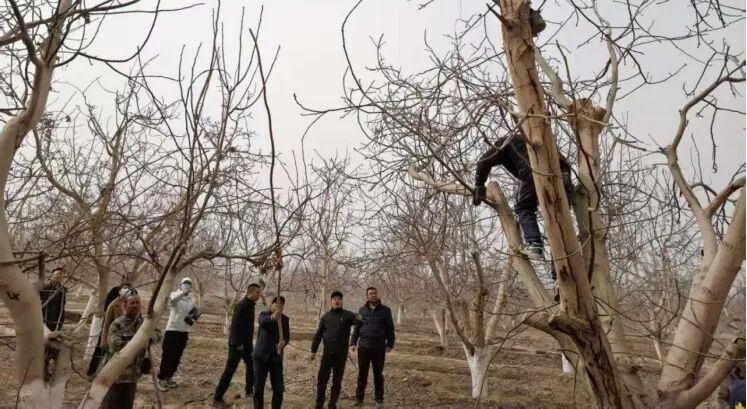 人勤春来早,林果管护正当时。眼下正值春季果树管理的关键时节,新和县尤鲁都斯巴格镇抢抓气温回升、农事有利的黄金时机,精心组织林果技术人员下沉一线、进村入田,手把手指导村民开展核桃树修剪、科学施肥、树形整理、病虫害预防等春季管护工作,全面夯实核桃产业增产增收基础,确保全镇春季林果业生产有序高效推进。