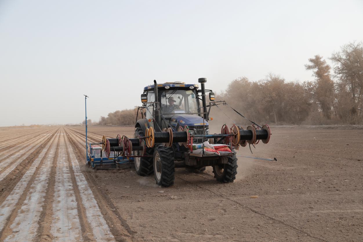 春回大地,沃野焕新。连日来,新疆阿拉尔市一团金银川镇三连田间地头机声轰鸣,覆膜、播种、压土一气呵成,孜然播种作业有序推进。当地职工群众抢抓农时,大力推广“孜然+玉米”轮作模式,以“一地两收”激活土地潜力,让小田块产出“双份收益”,为增收致富蹚出高效路径。