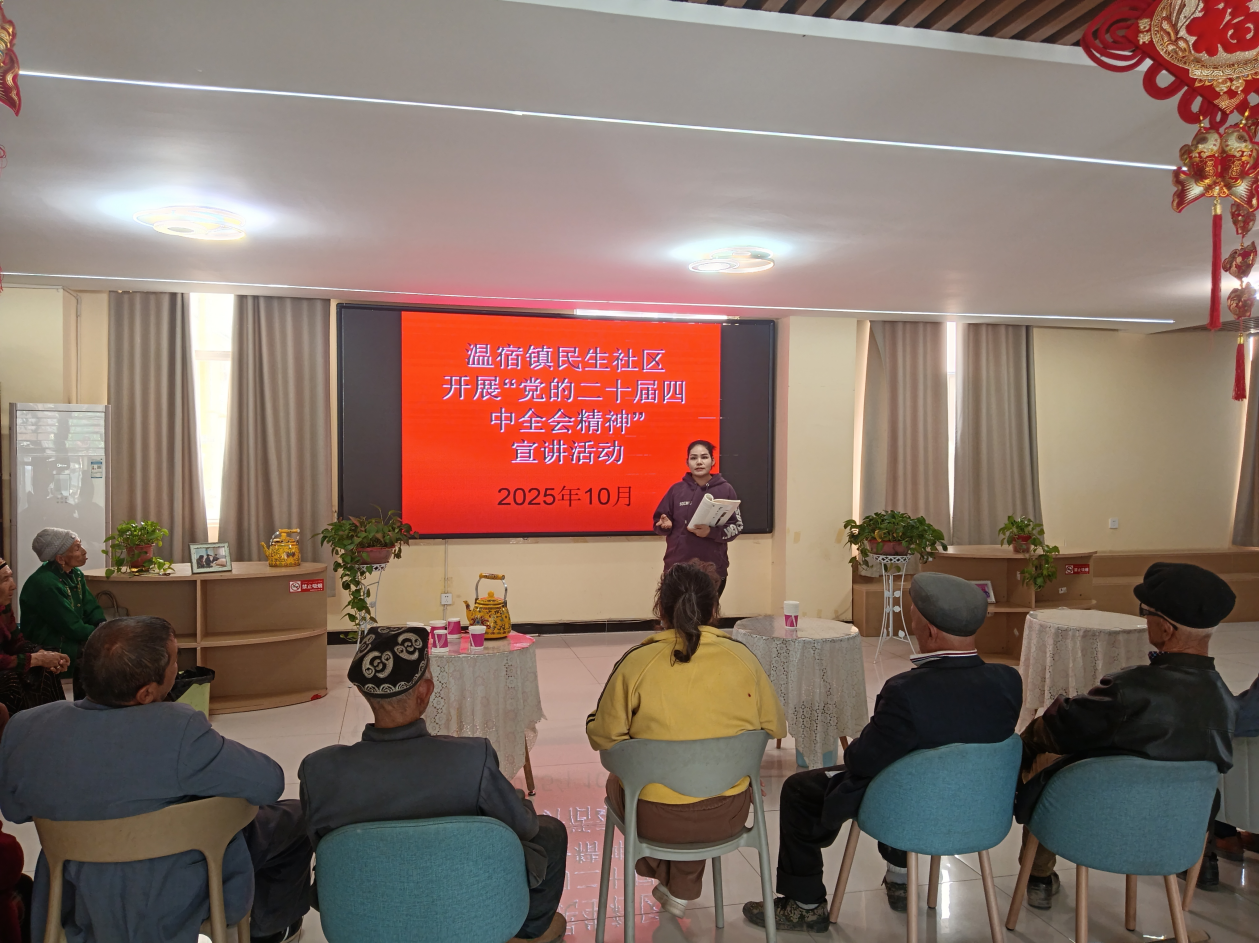 温宿县温宿镇民生社区干部买丽克扎提·牙生居民宣传党的二十届四中全会精神(陈为康 摄)