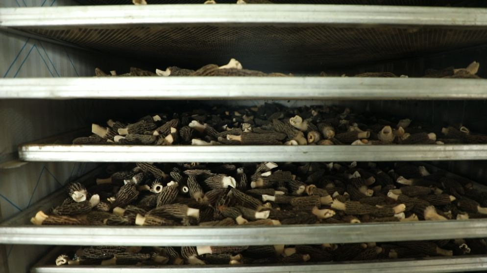 新鲜的羊肚菌采摘下来在烘干设备里烘干。郑亮 摄
