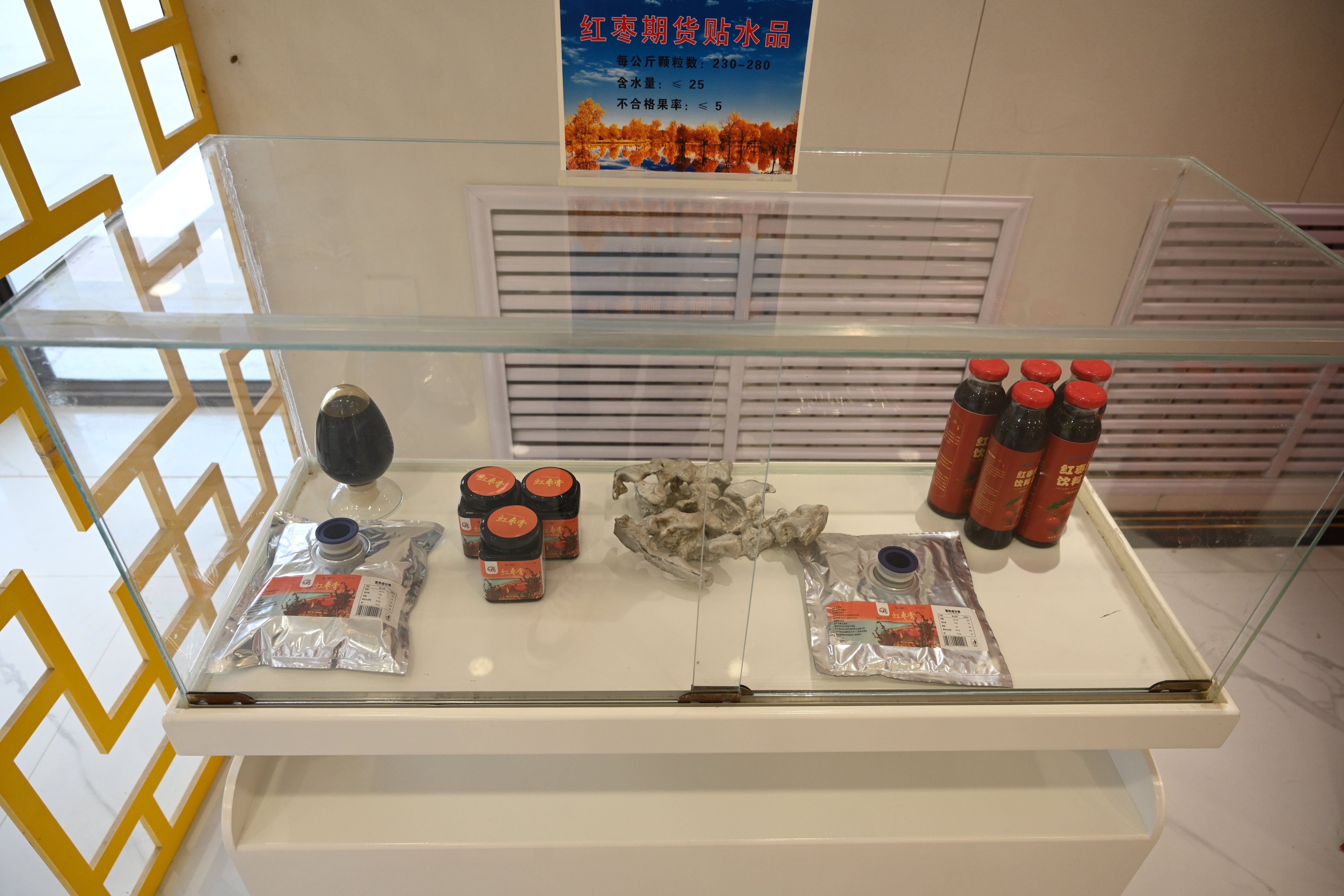 红福天红枣文化馆内的枣类休闲食品。吴东阳摄